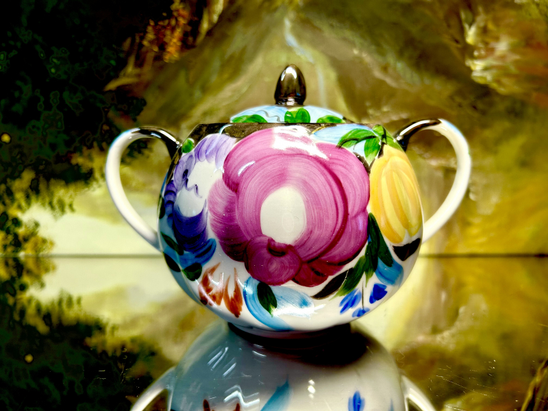 Zuckertopf: ↕ 11,5 cm / handverziertes Porzellan / Vergoldung