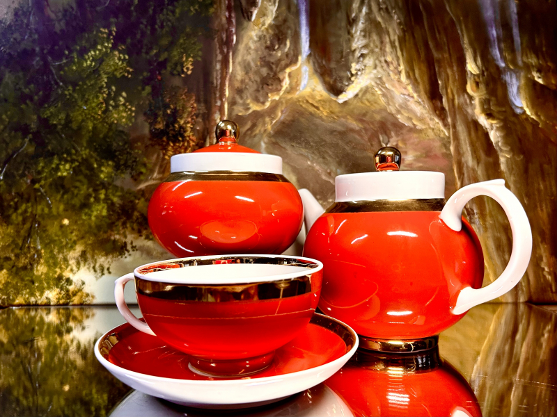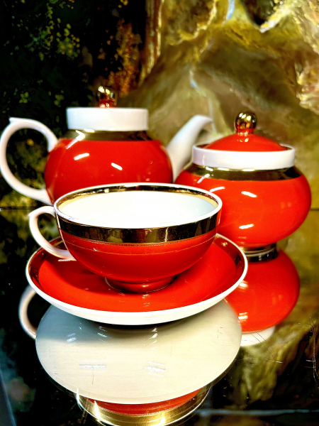 Teekanne: ↕ 14 cm / handverziertes Porzellan / Vergoldung