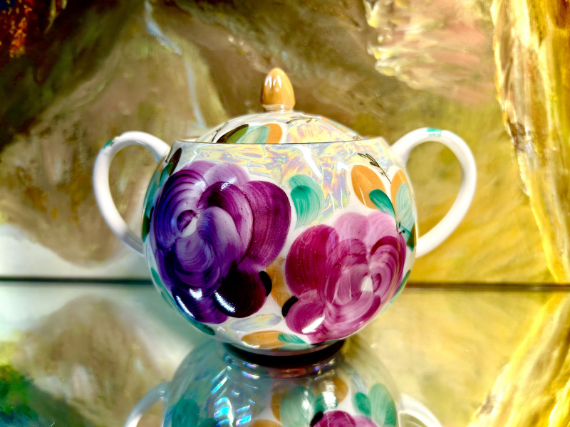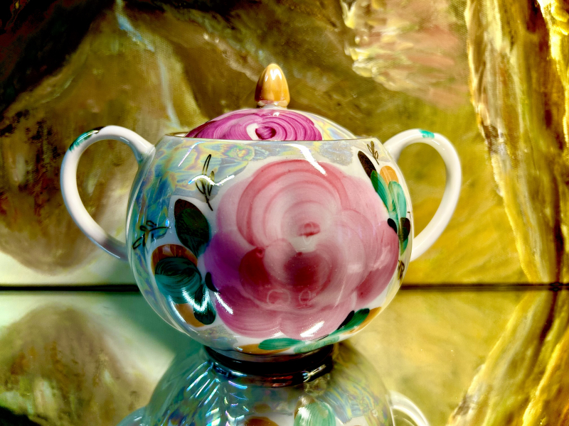 Zuckerdose: ↕ 11,5 cm / handverziertes Porzellan / Vergoldung