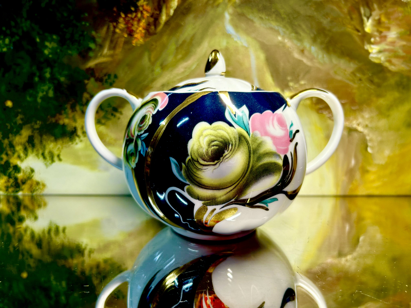 Zuckertopf: ↕ 11,5 cm / handverziertes Porzellan / Vergoldung