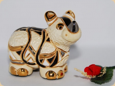 Figur: ↕ 6,5 cm / ↔ 8 cm / Keramik mit Platin- und 18 Karat Gold Verzierungen