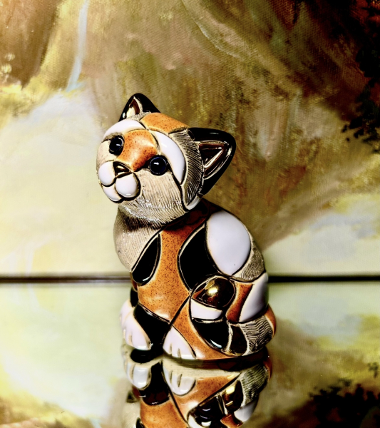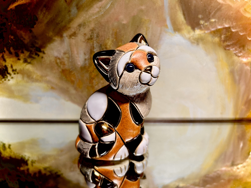 Hersteller: De Rosa Rinconada Serie: The FamiliesArtikel-Nr.: F358 / Baby Orange calico Cat Figur: ↕ 9 cm / ↔ 6 cm / Keramik mit Platin- und 18 Karat Gold VerzierungenLieferumfang: Figur / kleine Sammelbroschüre