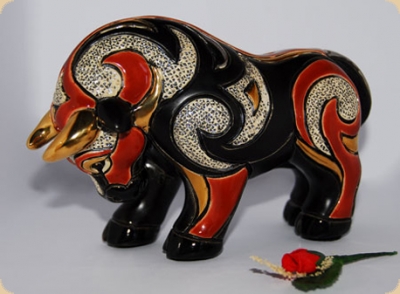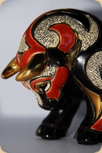 Figur: ↕ 12,5 cm / ↔ 18,5 cm / Keramik mit Platin- und 18 Karat Gold Verzierungen