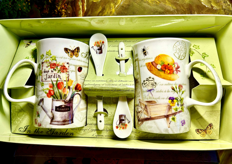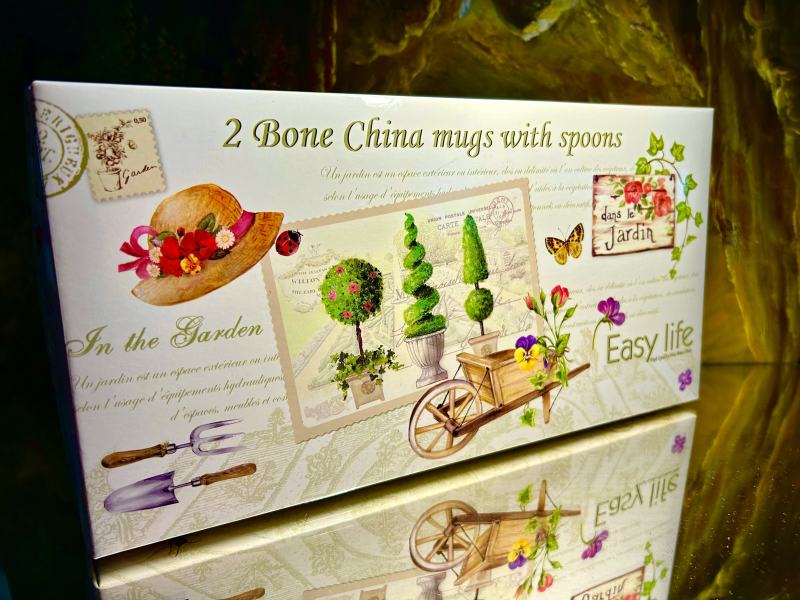 Becher: ↕ 10,5 cm / ca. 0,300 l / 0,195 kg / Fine Bone China PorzellanLöffel: 12 cm