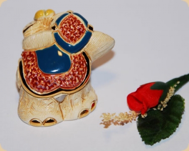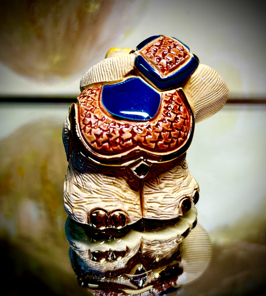 Hersteller: De Rosa Rinconada Serie: The Minis Artikel-Nr.: M06 Figur: ↕ 5 cm / ↔ 6 cm / Keramik mit Platin- und 18 Karat Gold Verzierungen Lieferumfang: Figur / kleine Sammelbroschüre