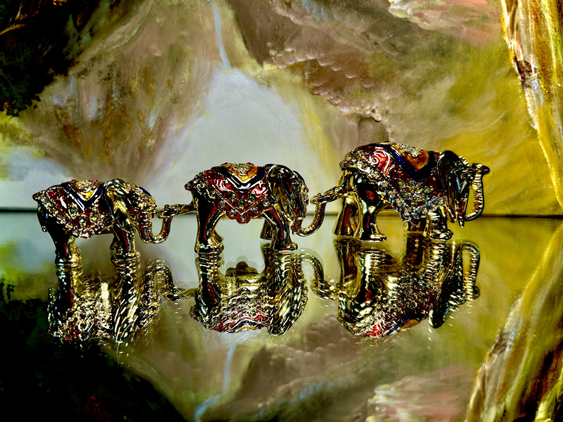 großer Elefant: ↕ 5 cm / mittlerer Elefant: ↕ 4 cm / kleiner Elefant: ↕ 3,5 cm