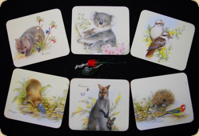 Motiv: Tierwelt Australiens (Jeder Untersetzer hat ein anderes Motiv)