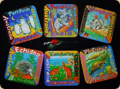 Motiv: Tierwelt Australiens (Jeder Untersetzer hat ein anderes Motiv)